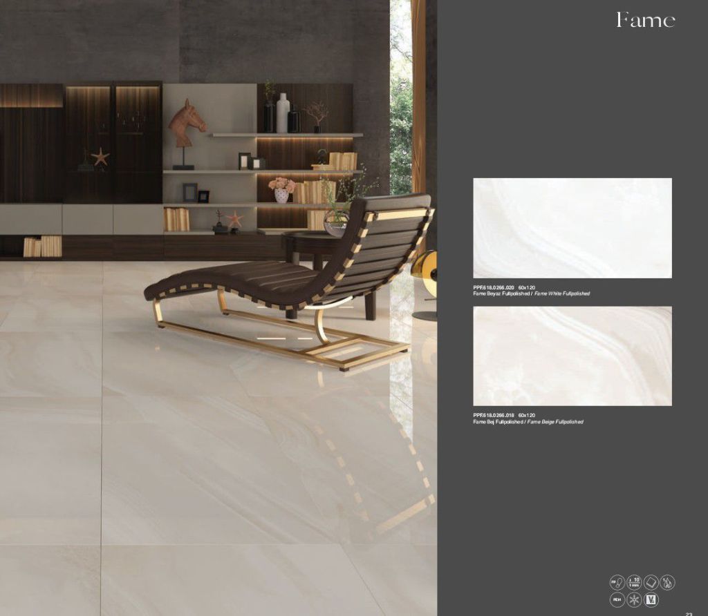 Die **Fame**-Serie harmoniert hervorragend mit modernen Möbeln und verleiht dem Raum eine raffinierte Ausstrahlung. Ihr minimalistisches Design macht sie zur idealen Wahl für all jene, die Schlichtheit in ihren Räumen bevorzugen. Diese Fliesen sind perfekt für Wohnbereiche, die einen modernen Touch und ein ästhetisches Erscheinungsbild erhalten sollen.